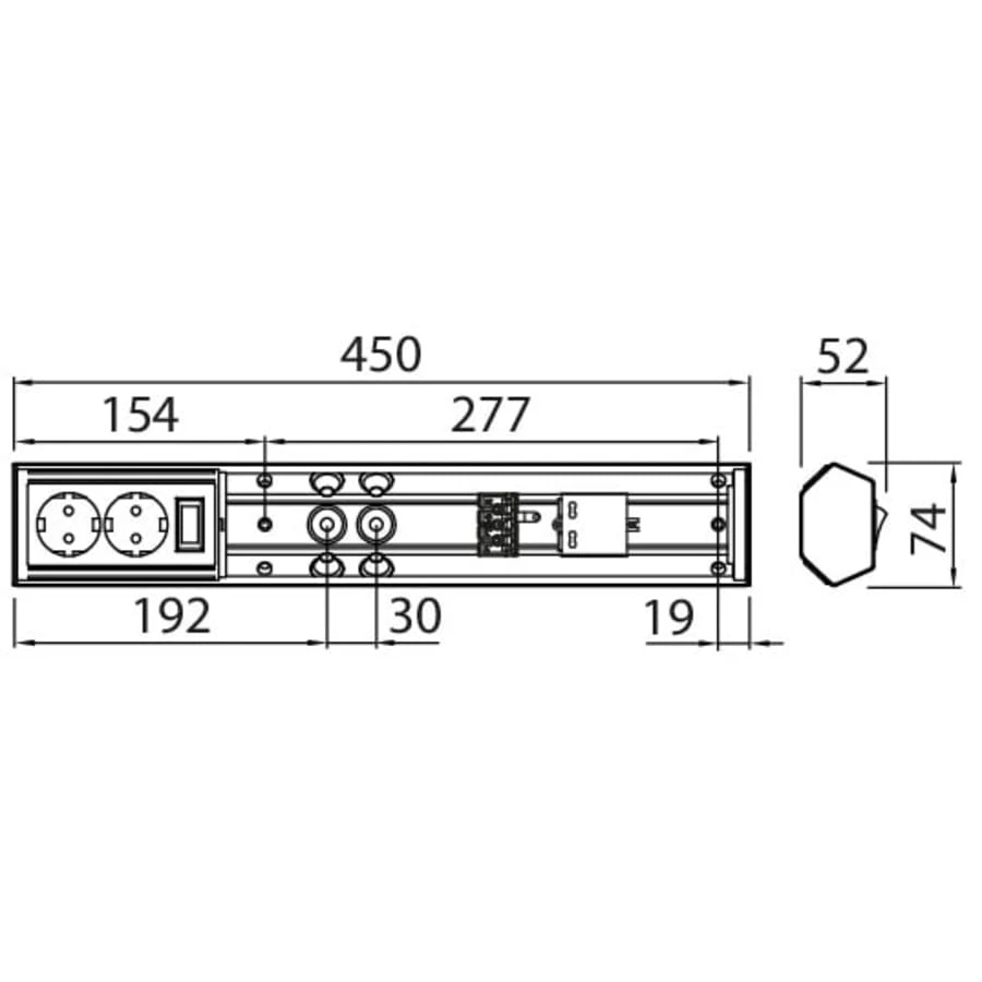 Workstation lamp for general lighting of intermediate spaces in the kitchen and worktops in the utility room. Led 5W 500lm. The color temperature is selected before installation as 3000K (pure white) or 4000K (bright white). You can surface mount Handy directly or at a 45° angle. Suitable for both right- and left-hand installation. Grounded socket and on/off switch. Aluminum frame, polycarbonate dome. The LED module is sold as spare parts – if the module breaks, it can be easily replaced by an electrician.