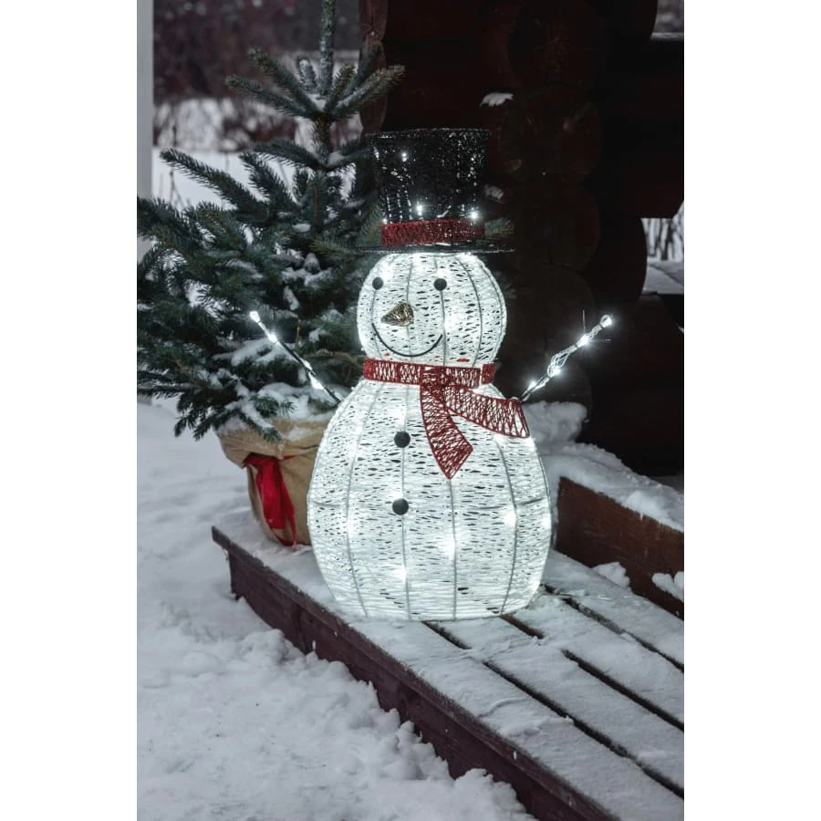 Den stora och sympatiska Niclas snögubbe njuter av sin natur både inomhus och utomhus. Figurhöjd 72 cm. Metallram, ljusset inuti figuren. Ljuset reflekteras genom den fibrösa ytstrukturen.