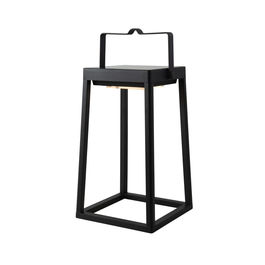 Vit 3000 K ljus Oasis-lykta, som kan laddas med en USB-kabel utöver solcellen. Integrerad LED, som kan ställas in för att lysa upp antingen atmosfäriskt eller effektivt ljus: 100 lm/ 500 lm/ 1000 lm. Material aluminium. Full längd 30 cm x b. 18 cm x djup. 18 cm. Utbytbart batteri 18650 Li-ion 3,7V 2200 mAh.